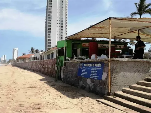 Mazatlán, Sin.- Ismael Ramírez Jiménez, propietario de un pequeño comercio, Mariscos “El Pelón”, ubicado a la orilla del mar, en uno de los accesos sobre la avenida Sábalo Cerritos, es uno de muchos palaperos que en la zona costera ofrecen pescados y mariscos, calientes o frescos.