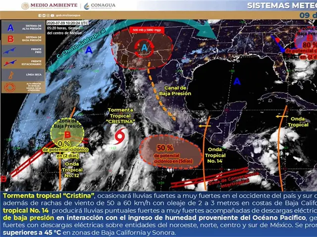 Se pronostica que “Cristina” se intensifique a huracán categoría 1 al sur de la Península de Baja California; en Sinaloa se prevén precipitaciones de 50 a 75 litros por metro cuadrado.