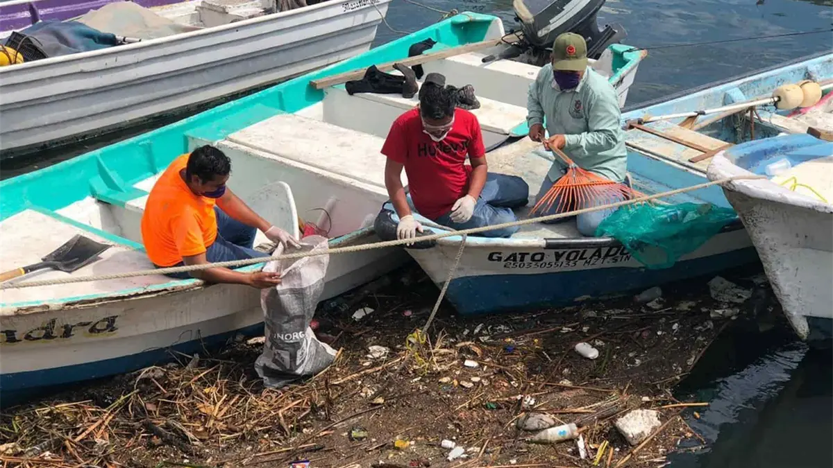 Lourdes Sanjuan Gallardo, titular de Ecología, informó que, desde las 8:00 horas de hoy, trabajadores municipales se sumaron a las acciones apoyados con herramientas, una lancha, una retroexcavadora y un camión de volteo, que trasladó los residuos hasta el Basurón Municipal.