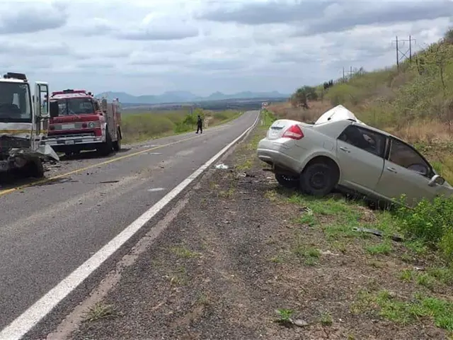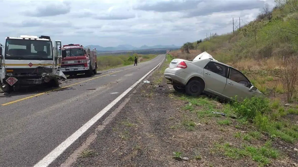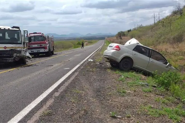El accidente se registró esta tarde, a la altura del kilómetro 55 de la carretera México 15, en el tramo Guamúchil-Pericos, en las inmediaciones de Rancho Viejo; entre una pila y un vehículo Nissan Versa, color dorado, modelo reciente.