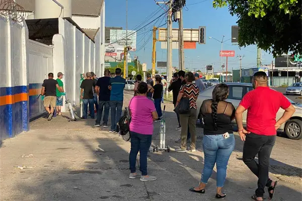 Culiacán, Sin.- El pasado domingo, Luz Noticias dio a conocer las largar filas en una empresa conocida de venta y renta de tanques de oxígeno en el municipio de Culiacán, ahora, casi una semana después, las colas siguen igual o, incluso, más personas intentan conseguirlo.