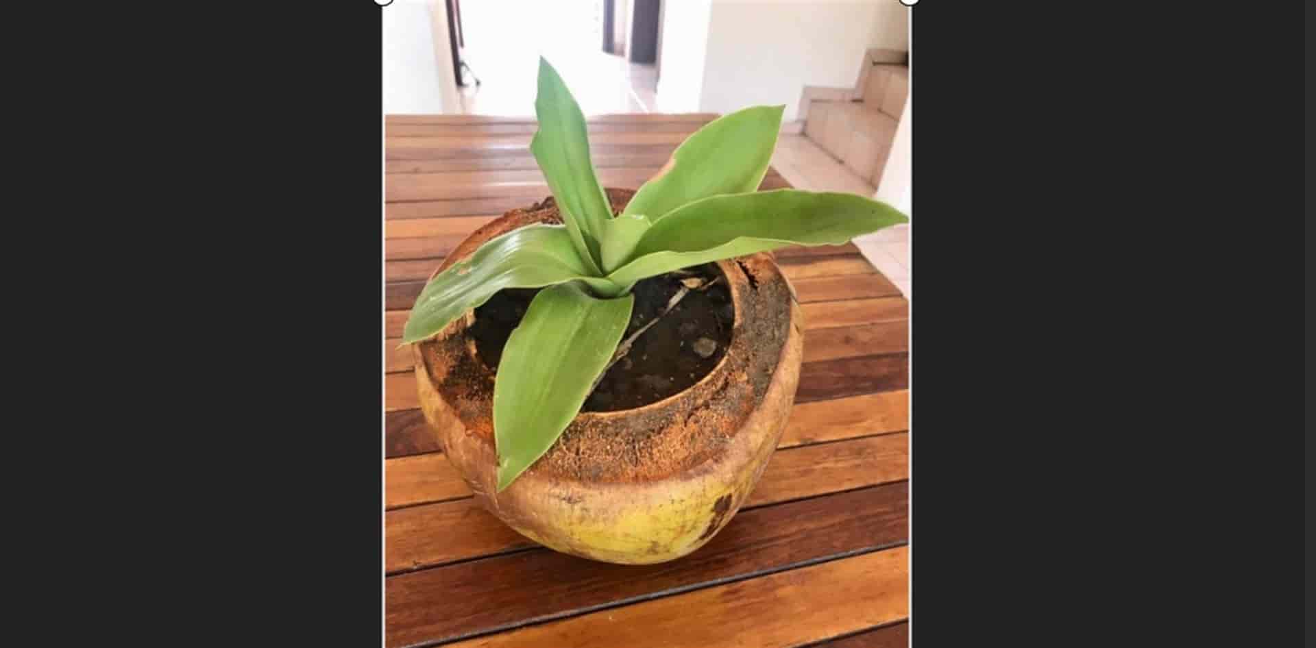 “Fuimos haciéndonos de poditos, plantas nuevas y salió por necesidad porque no teníamos ni tierra buena, ni macetas, investigamos y dimos con la opción sustentable que son los cocos. Al poner la planta dentro del coco por su fibra nutre la tierra, muchas veces cuando la planta no se te da es porque la tierra es ácida, al momento de meterlo al coco, como tiene materia orgánica, balancea el PH”, expresó.