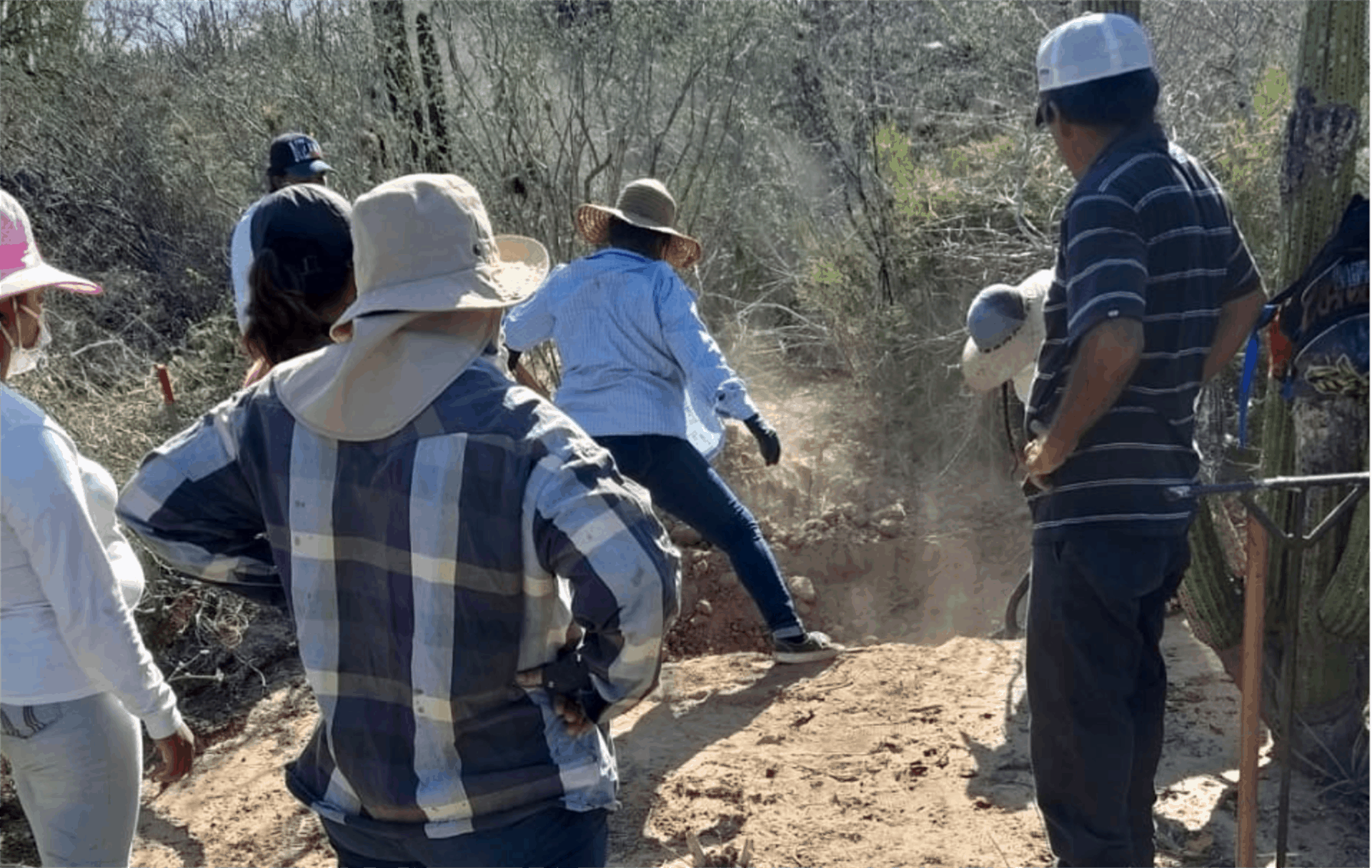 El colectivo se reunió para buscar en un predio de El Guachapori, ubicado entre el campo pesquero El Colorado y la comunidad de Cobayme, teniendo una exploración positiva.