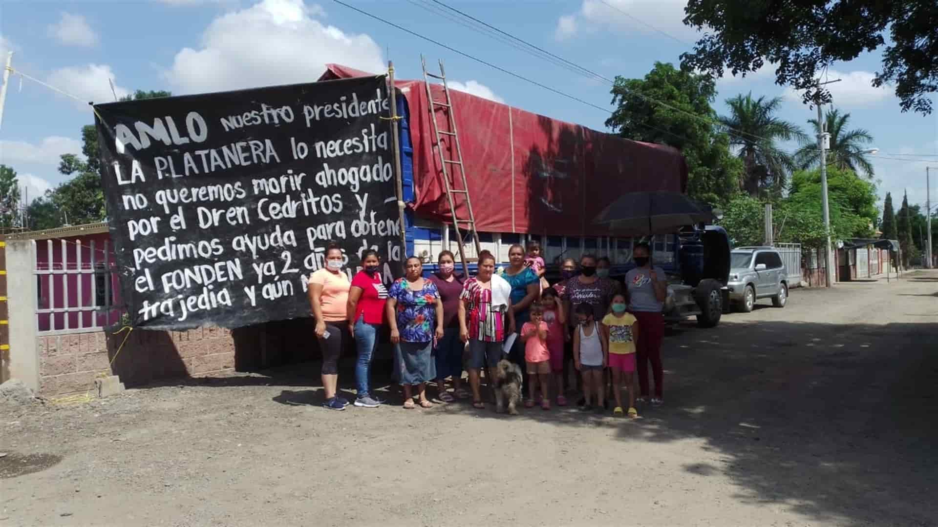 Con un mensaje escrito en un hule negro externaron al mandatario que “no quieren morir ahogados” por el dren en mención, y solicitan de su ayuda para acceder al Fonden, el cual aún no ha llegado a la comunidad a pesar de que la tragedia se registró hace dos años.