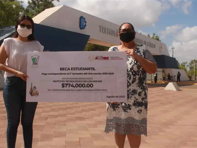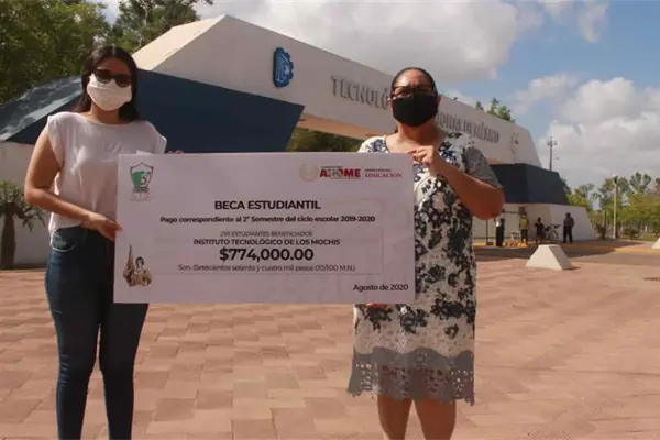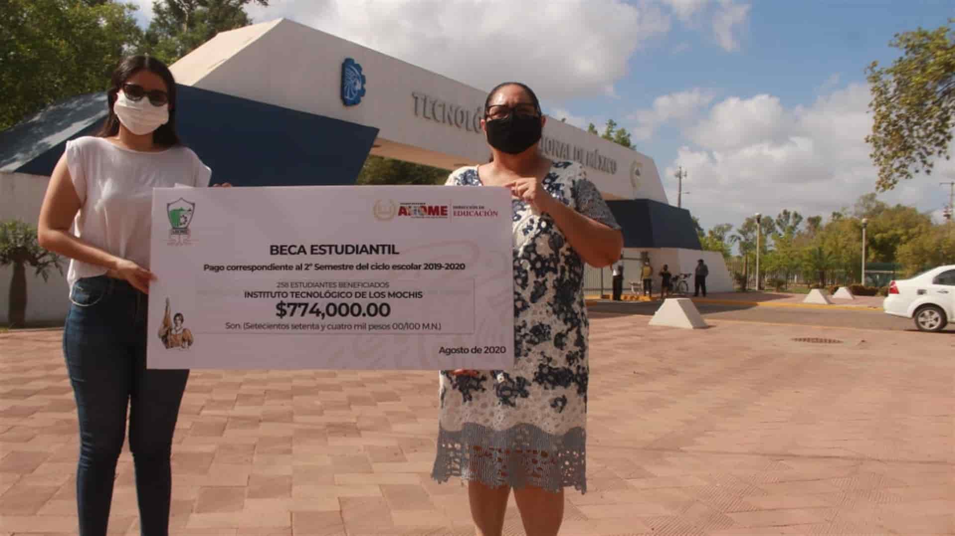 Los Mochis, Sin. La Directora de Educación Theira Martha Gómez, acudió este lunes a las instalaciones del Instituto Tecnológico de Los Mochis, para entregar de manera simbólica los cheques de beca económica por 3 mil pesos cada uno, para 258 estudiantes de dicha institución.