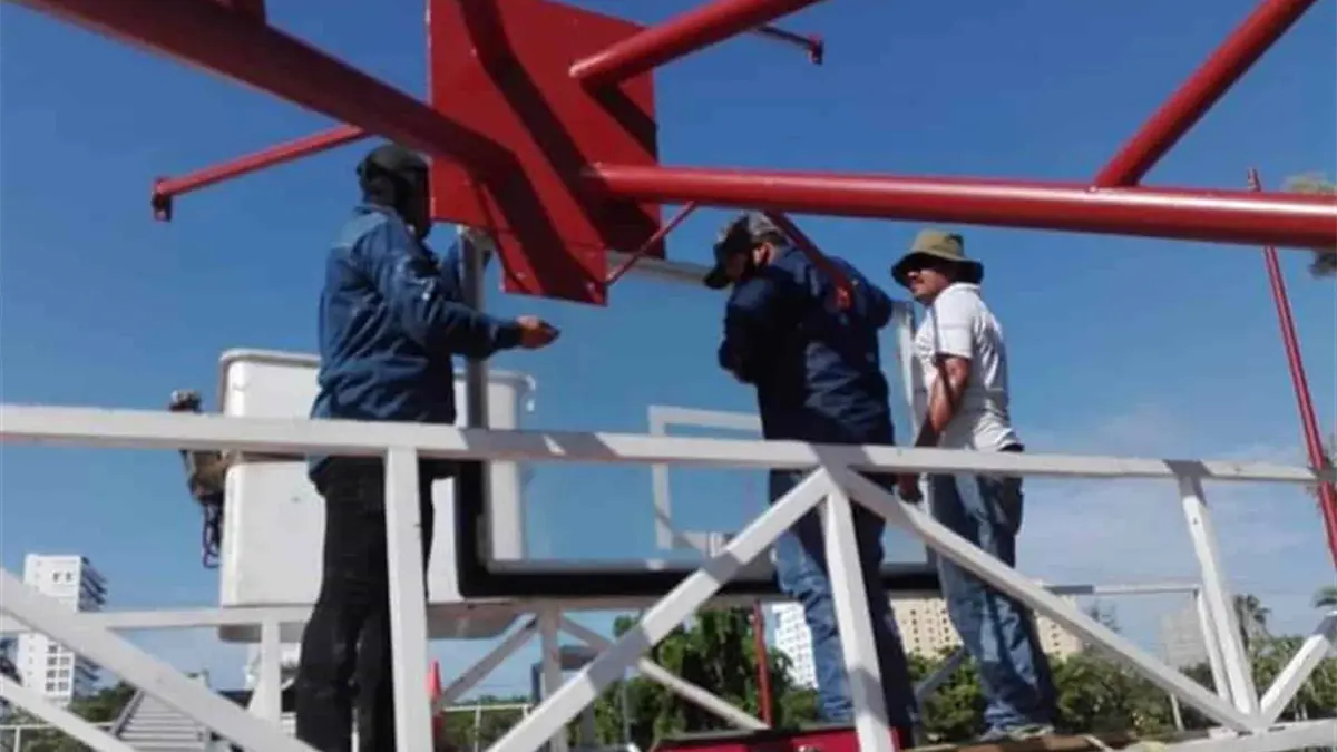 En esta ocasión tocó el turno a la cancha de usos múltiples ubicada en el Parque Lineal Kilómetro Cero, donde personal del instituto colocó tableros de acrílico para poner en condiciones la cancha de baloncesto.