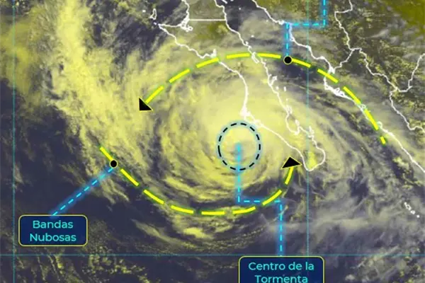Sus bandas nubosas ocasionan lluvias torrenciales en Baja California Sur e intensas en Sinaloa, además de vientos muy fuertes y oleaje elevado en costas de dichos estados.