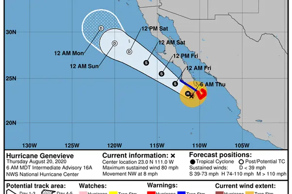 Huracán "Genevieve" se ubica a 115 km al oeste de Cabo San Lucas, BCS