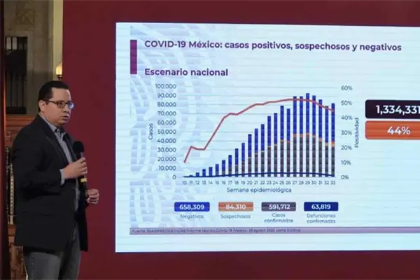 Con ello, el índice de positividad hasta la actual semana 33, es del 44 por ciento. Asimismo, se expuso que de momento se sigue la evolución de un total de 84 mil 310 personas que se mantienen en estatus de contagios sospechosos, debido a que han presentado síntomas relacionados pero aún no se tiene el resultado del examen diagnóstico correspondiente.