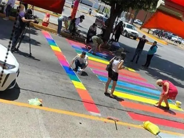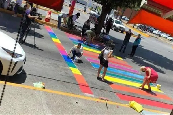 Culiacán, Sin.- Este domingo en Culiacán por segunda ocasión los colores del arcoiris fueron pintados en un paso peatonal, esta vez fue por el bulevar Francisco Labastida Ochoa, frente a un centro comercial.