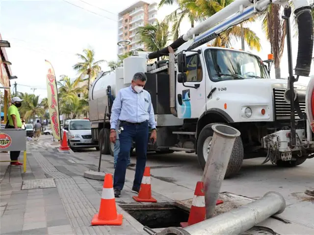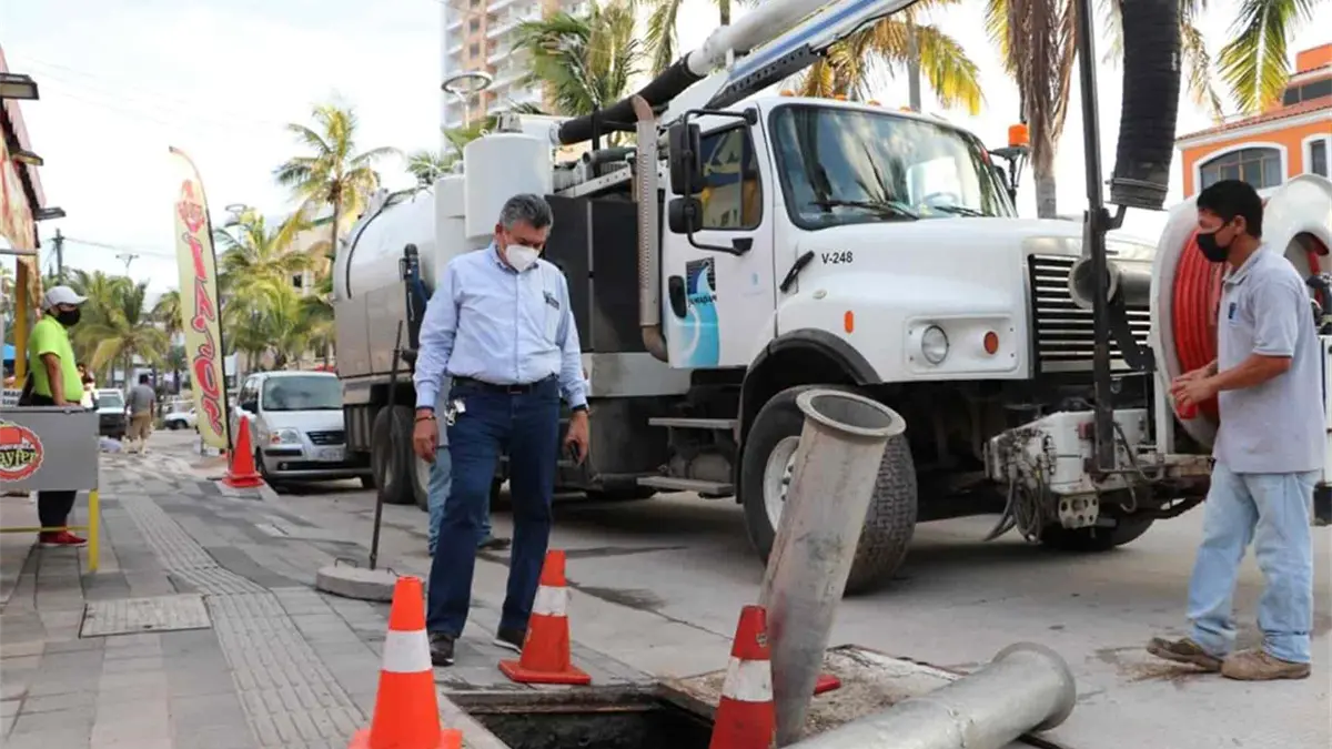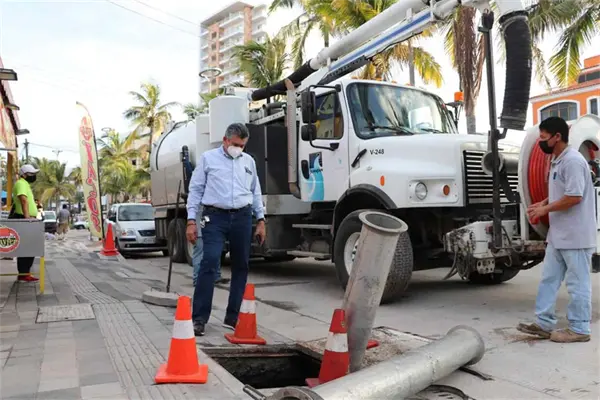También desazolva los pozos de visita de la Avenida Camarón-Sábalo.