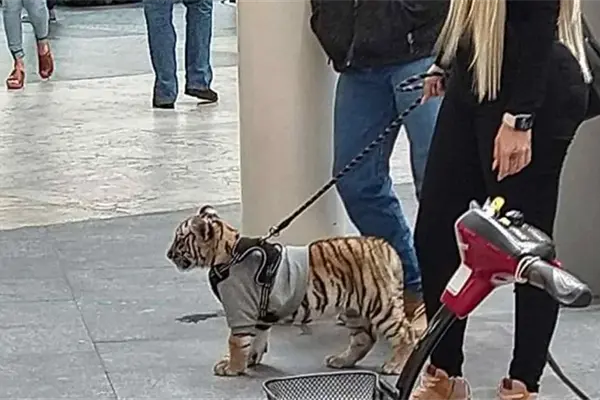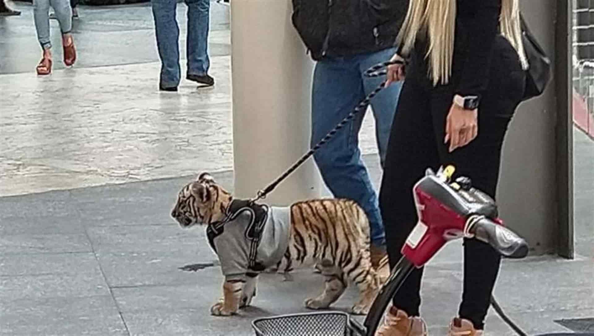 Ciudad de México.- A través de Twitter se viralizaron las fotos del momento en el que una mujer paseaba en el centro comercial Plaza Antara, ubicado en Polanco en la delegación Miguel Hidalgo en la Ciudad de México, junto a un cachorro de tigre de bengala (Panthera tigris tigris), especie en peligro de extinción.