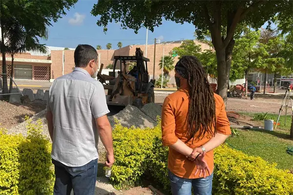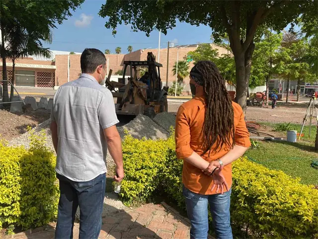Los Mochis, Sin.- El Presidente Municipal de Ahome, Manuel Guillermo Chapman Moreno, realizó un recorrido de supervisión en los trabajos de remodelación que se realizan en la Plaza de la Mujer, los cuales tienen un gran avance.