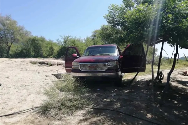 Se trata de una camioneta GMC Yukon, de color tinto, modelo 2004, sin placas de circulación, misma en la que localizaron en los asientos traseros, dos paquetes confeccionados con cinta canela y que contenían 23.5 kilogramos de mariguana; uno con un peso de 11.500 kilogramos y otro más de 12 kilos.