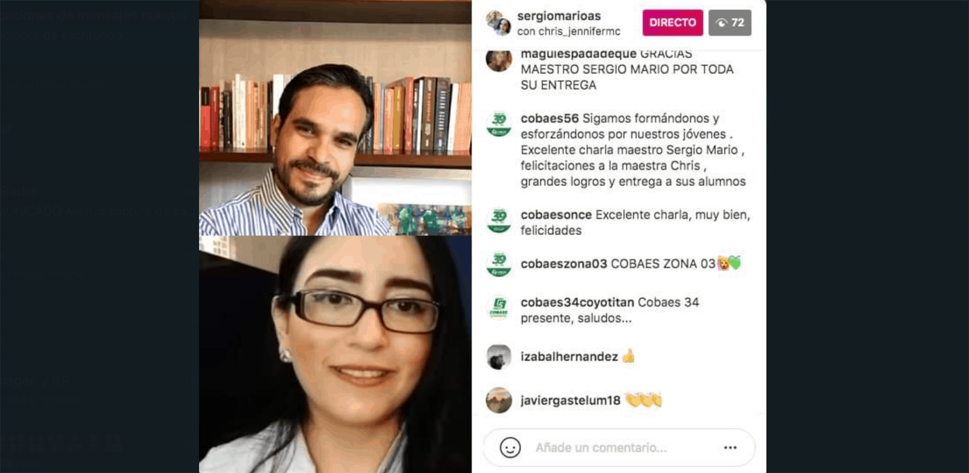 Culiacán, Sin.- “Estoy muy orgullosa de mis alumnos, yo me baso en el aprendizaje basado en proyectos, he visto un cambio de mentalidad grandiosa y quiero ayudarlos a que encuentren su camino de vida”, aseguró Chris Jennifer Menchaca Castro, profesora de Capacitación para el Trabajo del Plantel 43, “Profr. Miguel Castillo Cruz”, de Mochicahui, El Fuerte, durante la charla que sostuvo hoy con el Director General del Colegio de Bachilleres, Sergio Mario Arredondo Salas, a través de la red social de Instagram.