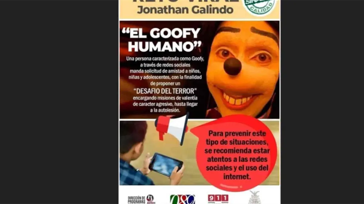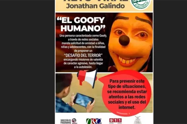 Culiacán, Sin.- La Secretaría de Seguridad Pública de Sinaloa pide a los padres de familia estar atentos de lo que ven sus hijos en redes sociales, ya que un personaje conocido como Jonathan Galindo alias “Goofy Humano”, lanza retos peligrosos a los niños y jóvenes.