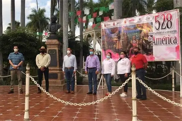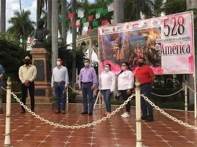 El Fuerte, Sin.- Durante la conmoración del 528 aniversario del “Descubrimiento de América” en el pueblo mágico de El Fuerte; autoridades del Ayuntamiento, así como de la Secretaría de Educación Pública y Cultura y organismos de la sociedad civil rindieron el homenaje protocolario en la Plaza de Armas de El Fuerte.