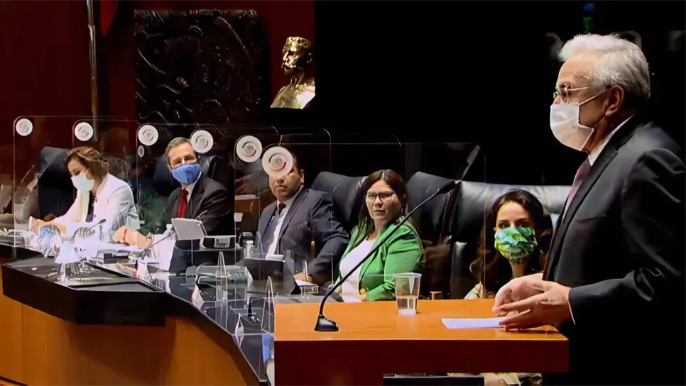 Al participar ante el Pleno, Rocha Moya celebró y aplaudió la labor que Moctezuma Barragán y su equipo han hecho para enfrentar los desafíos de la pandemia por el Covid-19.