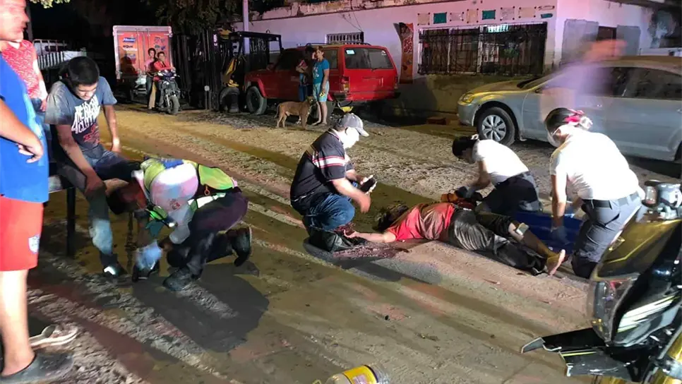 Debido al impacto, el joven y la mujer adulta que viajaban en la ligera unidad, derraparon y salieron proyectados, ambos resultaron con lesiones. El joven sufrió una herida en la pierna derecha, así como golpes en el tórax y la cabeza. Mientras que la mujer adulta, al parecer abuela del conductor, se llevó la peor parte y sufrió posible fractura de la pierna izquierda, además de una lesión severa en el cráneo.