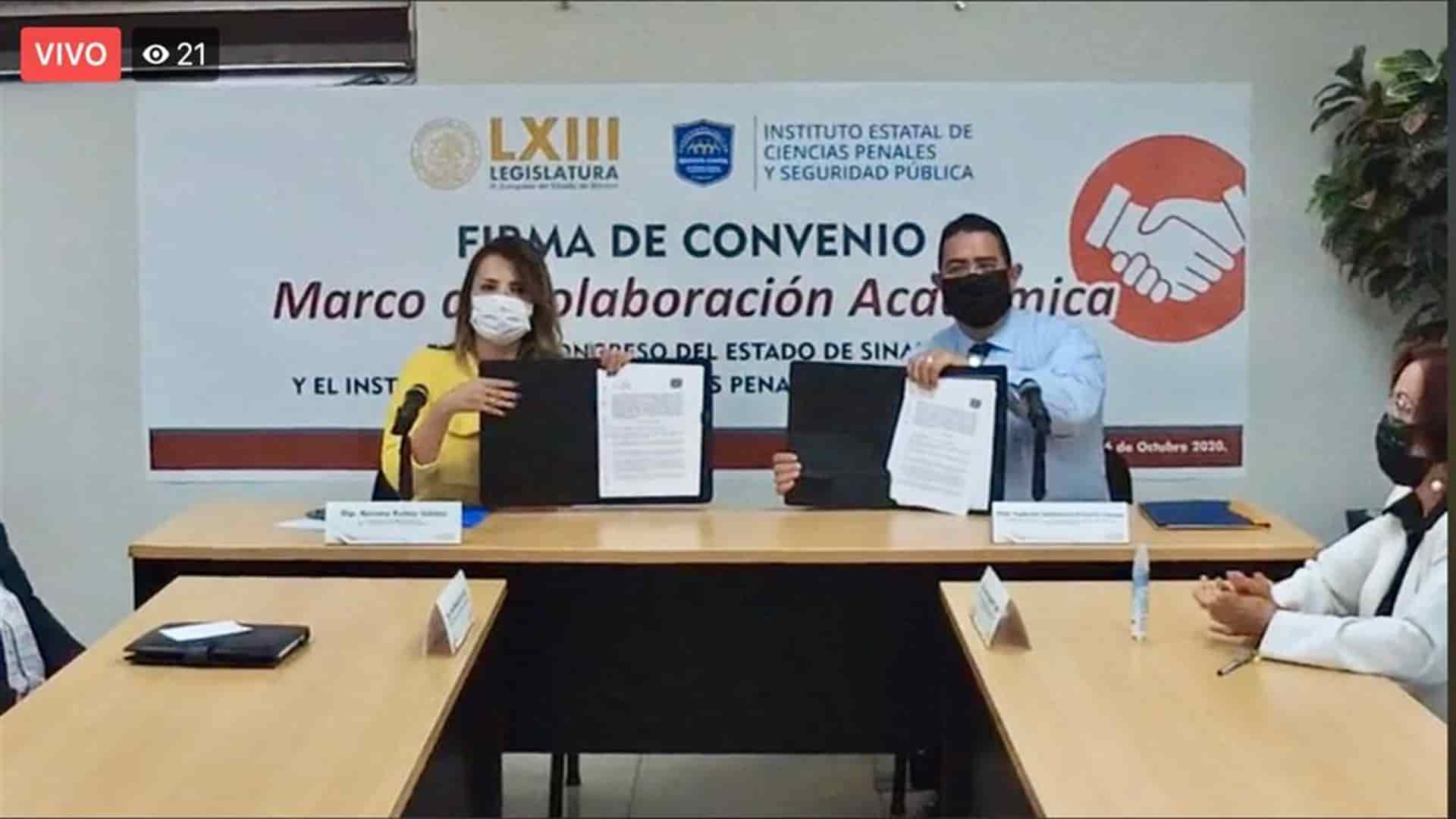 Culiacán, Sin.- A través de una firma de un convenio de colaboración académica con el Instituto de Ciencias Penales y Seguridad Pública, el Congreso de Sinaloa impulsará la investigación y cultura en los cuerpos de seguridad estatal y municipal con el fin de que predomine el respeto a los Derechos Humanos en su labor.