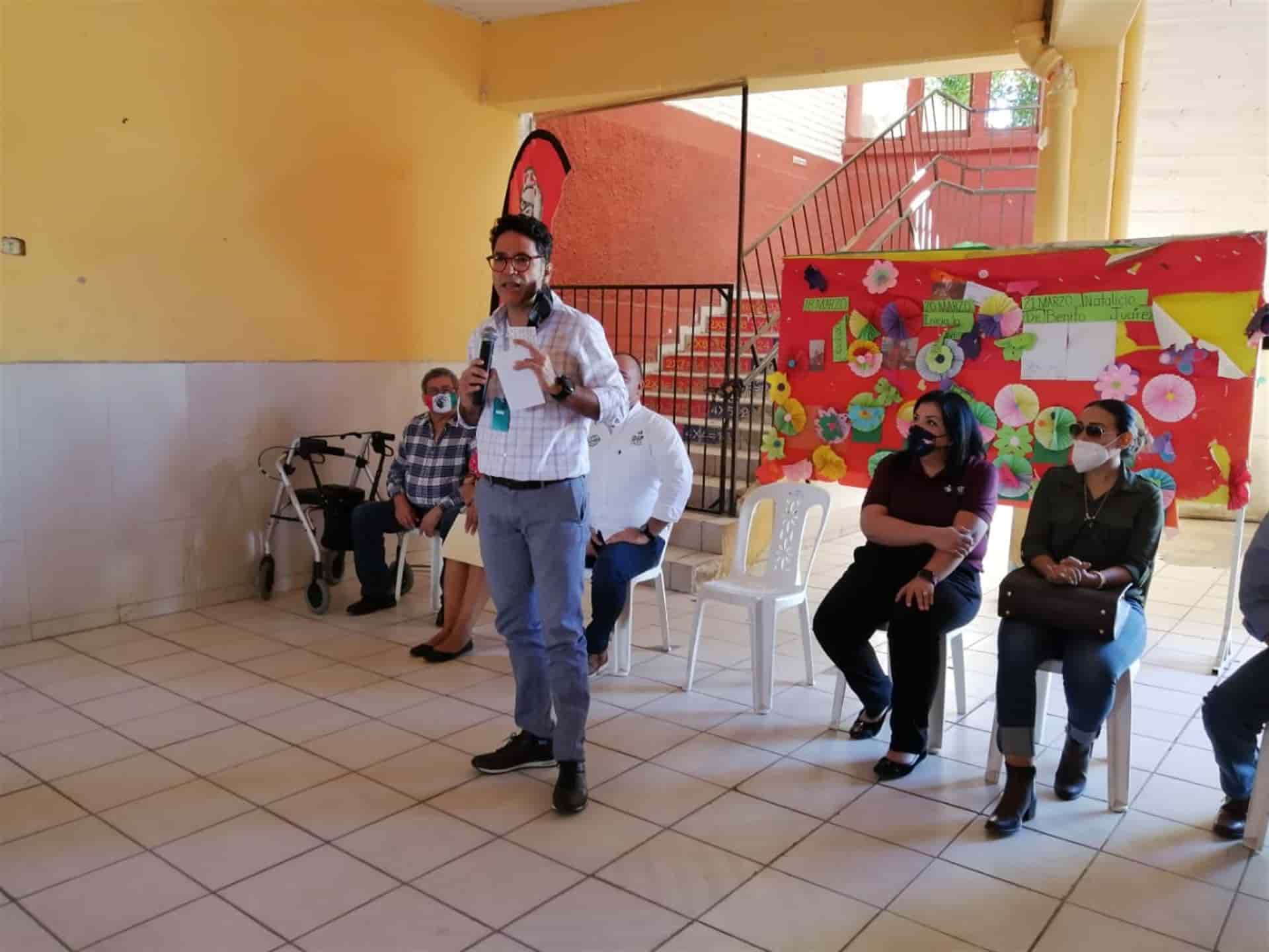 Juan Alfonso Mejía visitó dos escuelas de Los Mochis con el Plan Alimentario Emergente, que busca apoyar a más de 40 mil niño sinaloenses.