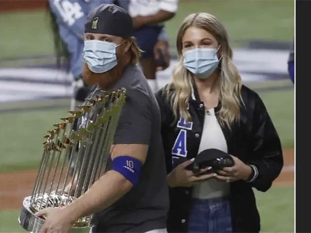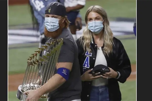 Pero más tarde, Turner regresó al campo con una máscara para celebrar la coronación de los Dodgers, después se la quitó y posó para una foto del equipo allí mismo.