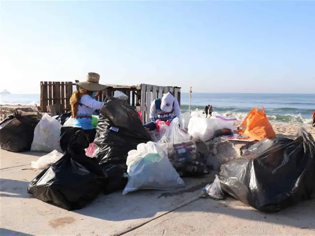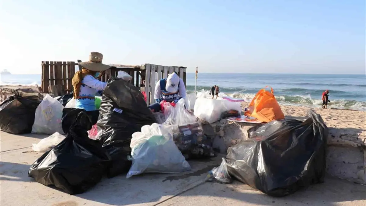 Trabajadores de las diferentes gerencias que integran la Jumapam unieron esfuerzos para lograr que un total de 105.3 kilos de basura fuesen retirados de una franja de playa de Cerritos de aproximadamente 500 metros.