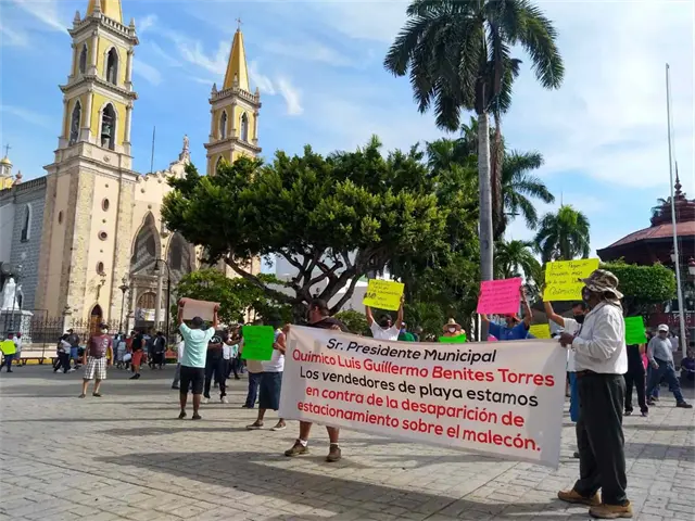 Mazatlán, Sin.- Esta mañana, un grupo conformado de vendedores en zona de playa y del malecón se manifestaron en Mazatlán contra la autoridad municipal.