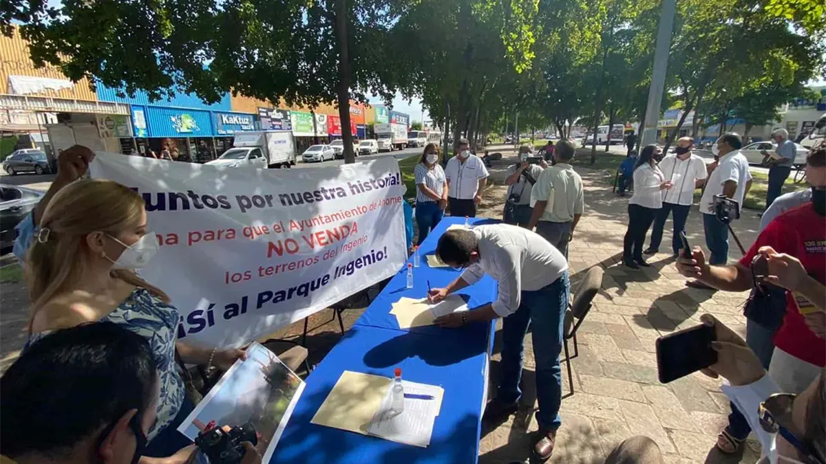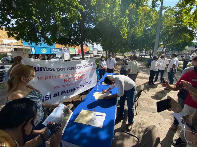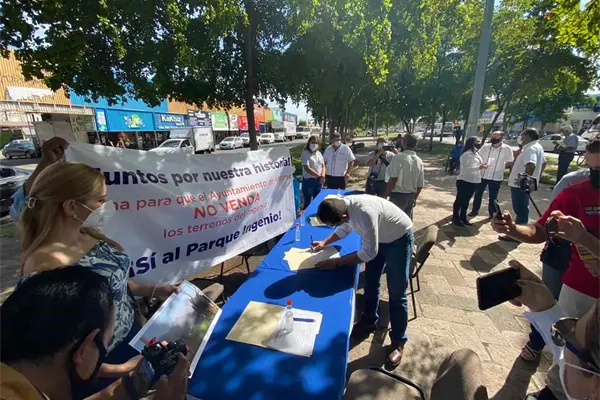 Los Mochis, Sin - Militantes del Partido Acción Nacional (PAN) en Ahome se reunieron en el cruce del bulevar Rosendo G. Castro esquina con Zaragoza, para recaudar firmas ciudadanas en apoyo al proyecto denominado "Parque Ingenio", que habrán de presentar al Ayuntamiento de Ahome y que no se venda el terreno donde está ubicado el ingenio azucarero que dio vida a la ciudad de Los Mochis.
