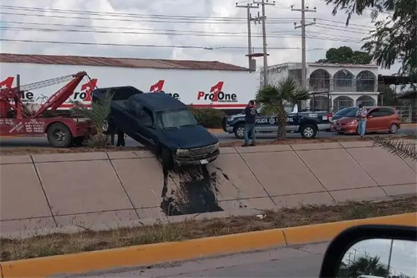 Se le votan los cambios a una camioneta y se cae al Dren Juárez