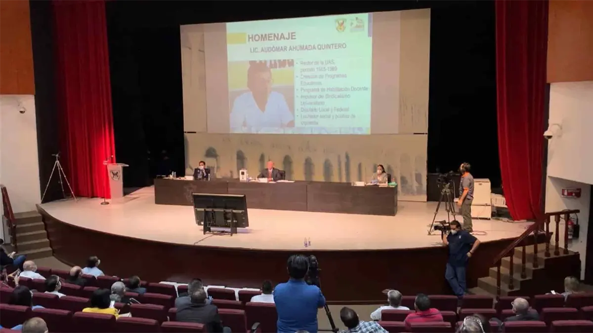 “La izquierda le debe un reconocimiento al licenciado Audómar Ahumada Quintero y lo que es la Universidad Autónoma de Sinaloa le haremos un reconocimiento en el pleno del Consejo Universitario por haber sido rector, por haber impulsado a la universidad en esos años, por haber luchado por la autonomía y la defensa de ella”, enfatizó el rector.