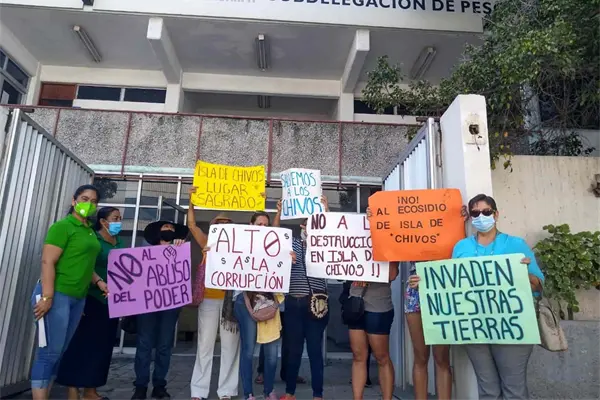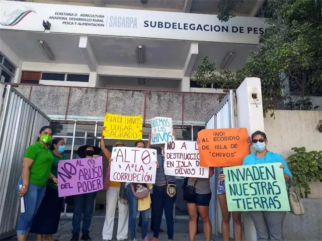 Mazatlán, Sin.- Luego de manifestarse pacíficamente por la construcción de una obra sobre un cuerpo de agua en la Isla de Chivos, los vecinos de este ejido acudieron ante representantes de Semarnat para exigir información.