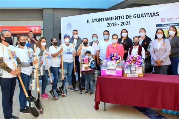 En el Día Internacional para Erradicar la Violencia Contra las Mujeres, la alcaldesa Sara Valle entregó cubetas de fierro, cubrebocas, gel antibacterial, guantes de látex, palas, sueros y agua embotellada al colectivo Guerreras Buscadoras, un colectivo que busca familiares desaparecidos en los municipios de Empalme y Guaymas en Sonora.