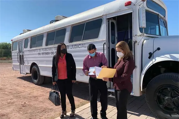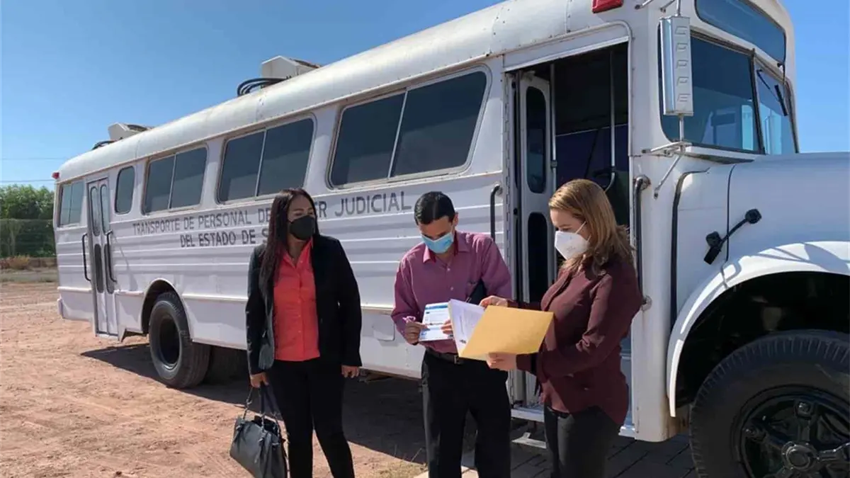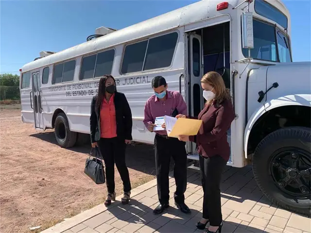 Los Mochis, Sin.- Luego de dos años de gestiones, este miércoles el Sindicato de Trabajadores al Servicio del Estado (Stase) recibió el Poder Judicial, un camión que garantiza el traslado seguro de casi 100 trabajadores del estado del Centro de las Consecuencias Jurídicas del Delito (Cecjude), de Goros II a Los Mochis y viceversa.