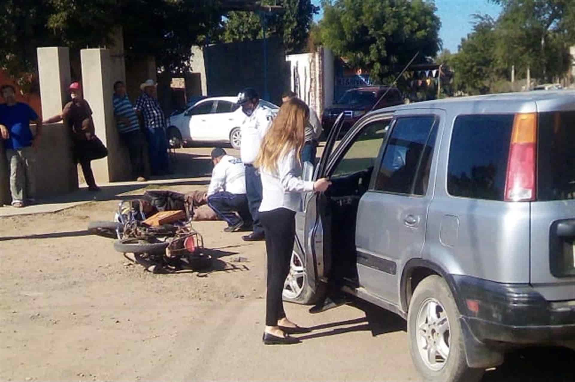 Guasave, Sin.- Un motociclista resultó lesionado, la tarde de este jueves, al sufrir un accidente automovilístico cuando circulaba hacia la comunidad de Las Quemazones.