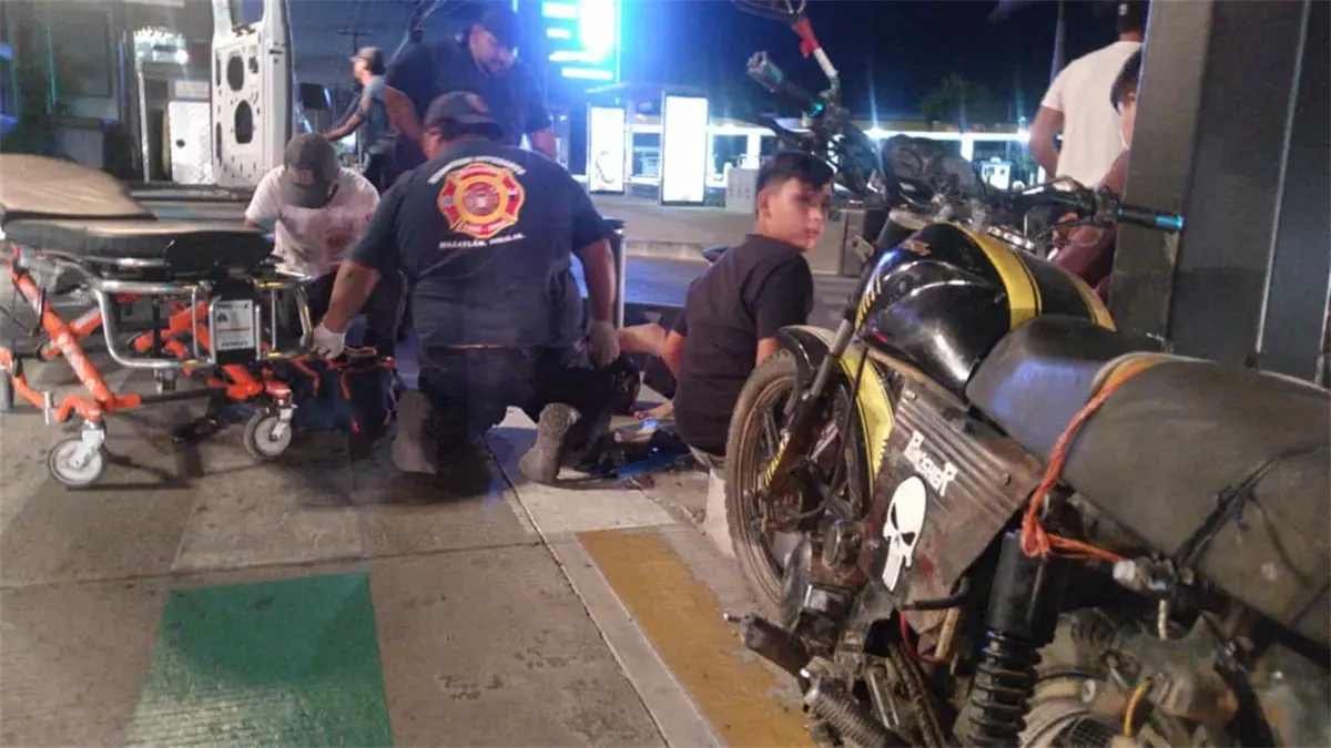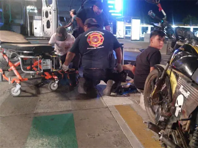 Luego del accidente, el motociclista fue auxiliado en el sitio por personal de Bomberos Veteranos y posteriormente trasladado a una clínica del puerto de Mazatlán para una valoración debido a las lesiones.