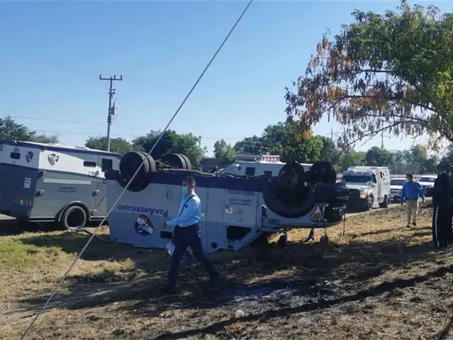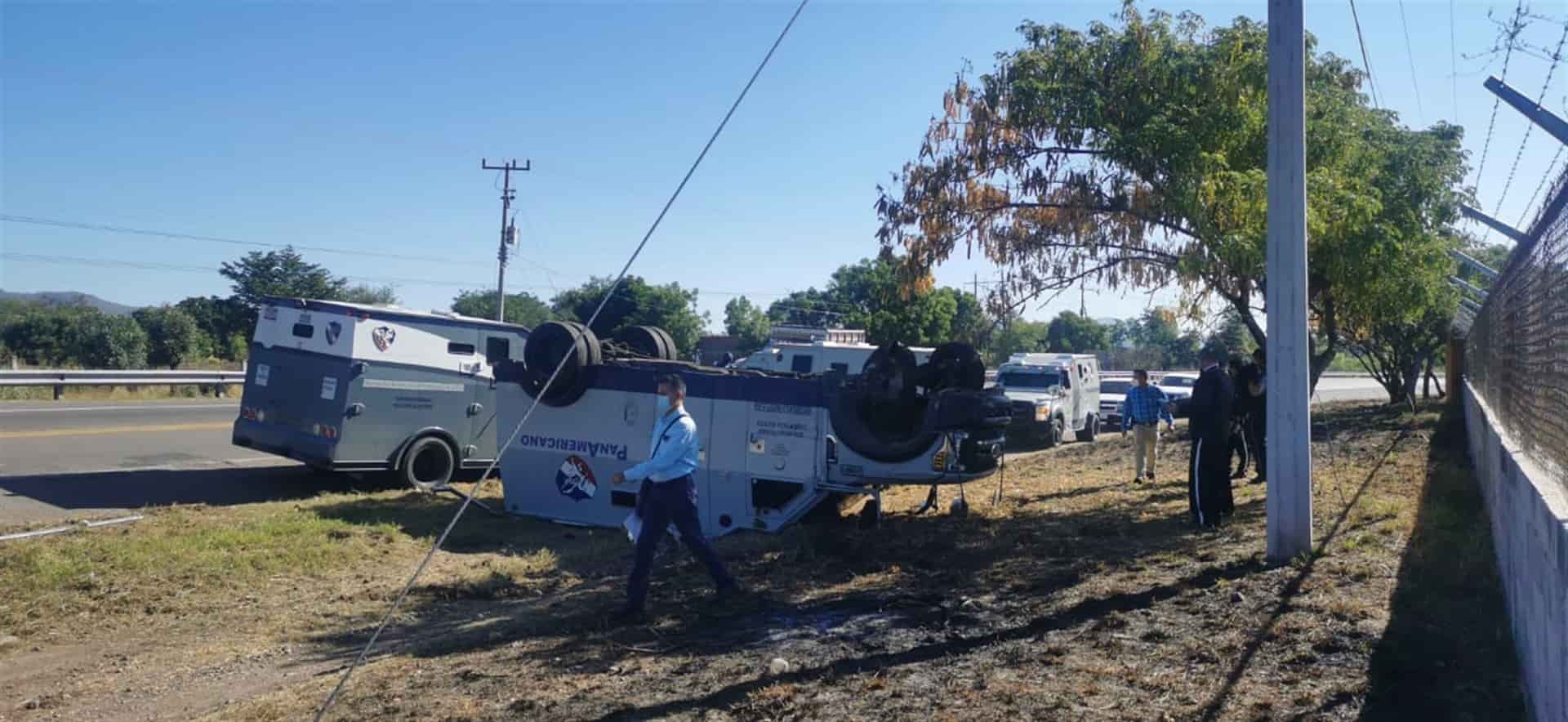 Culiacán, Sin.- Un camión blindado de una conocida empresa de traslado de valores se volcó esta mañana cuando circulaba sobre la carretera Internacional México 15, en las inmediaciones de la comunidad del Limón de los Ramos, al norte de Culiacán.