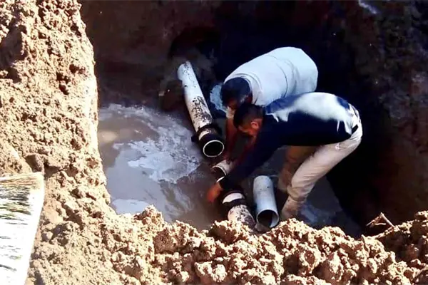 Los Mochis, Sin.- En plena fiestas decembrinas, el personal Junta de Agua Potable y Alcantarillado del Municipio de Ahome (JAPAMA) reparó una fuga de agua potable en tuberías de 6” de diámetro en el Ejido Dolores Hidalgo.