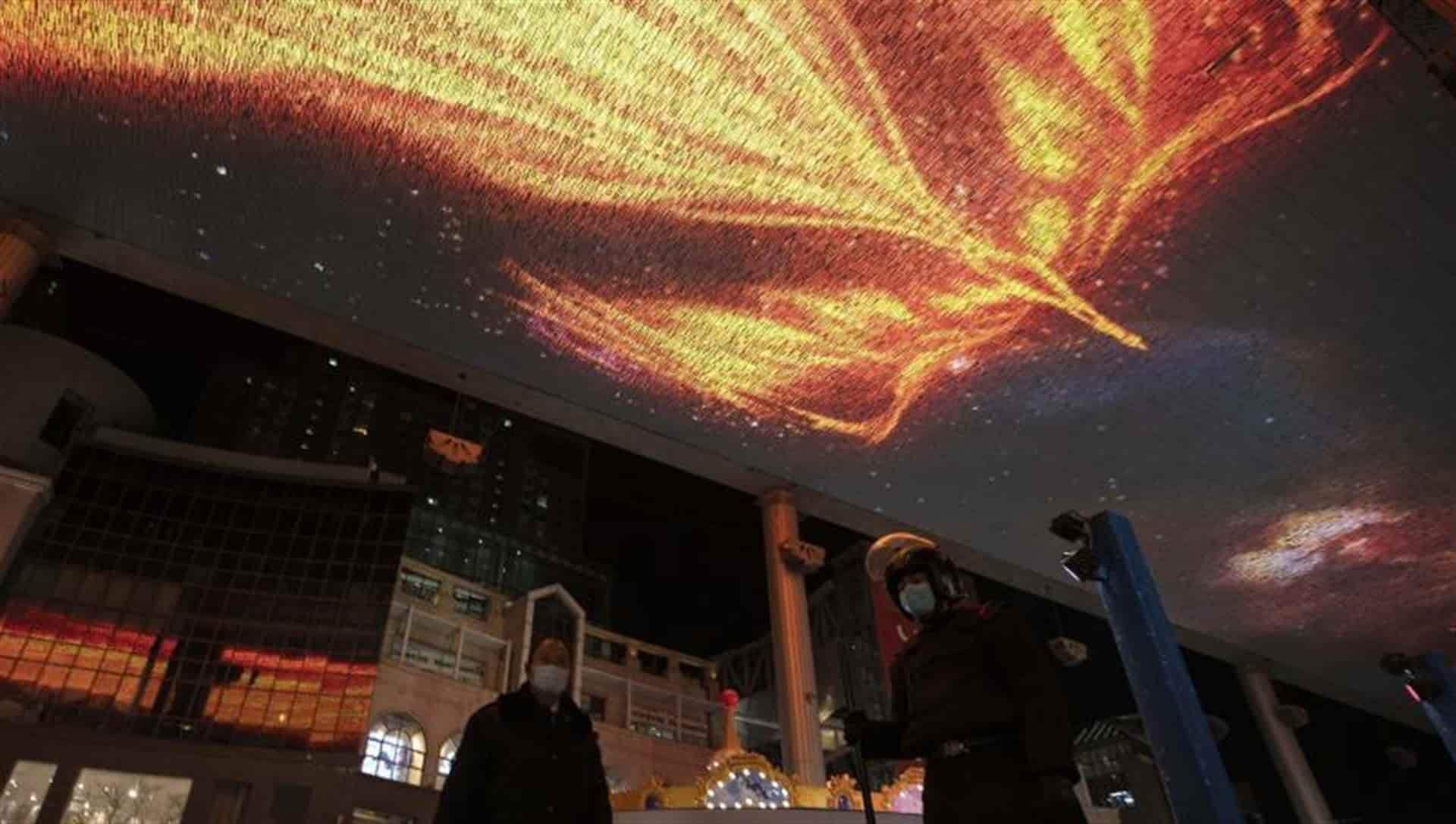 La ciudad de Pekín proyecto un fénix sobre el cielo nocturno para recibir al Año Nuevo 2021. A pesar de la pandemia de coronavirus Covid-19, China tuvo un enorme progreso en el desarrollo de la economía y la erradicación de la pobreza en zonas rurales, informó el presidente Xi Jinping.