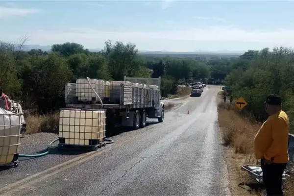 "Está el municipio de primera respuesta y nosotros vamos a apoyar la maniobra de trasvase y del derrame sobre la carretera, ya se solicitó una tonelada de cal también para contrarrestar el ácido, está en el tramo carretero a la presa, ahorita está trabajando bomberos El Fuerte y Bomberos de El Carrizo para la delimitación del área, ya llegó el equipo de trasvase también, afortunadamente no cayó al agua, es de El Fuerte a El Carrizo", informó.