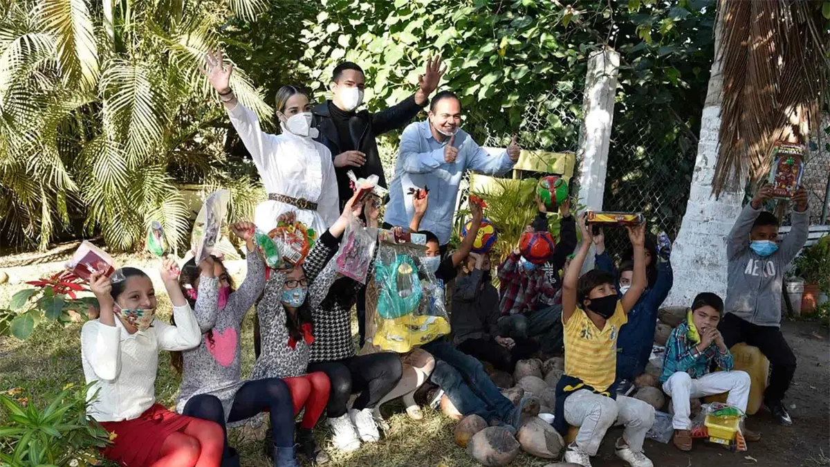 Reciben niños de Las Grullas Margen Derecha, dulces, regalos y rosca por el Día de Reyes
