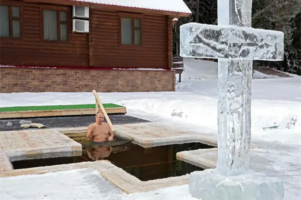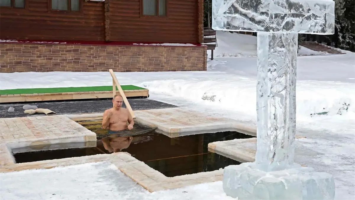 La celebración ha coincidido este año con una brusca bajada de temperatura, que ha alcanzado valores mínimos de 25 grados bajo cero, y en la región de Moscú, donde presuntamente se bañó Putin, el termómetro marcó 18 grados bajo cero.