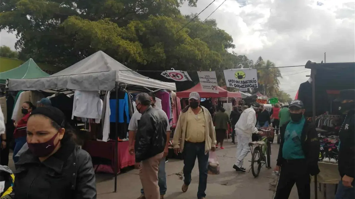 Acuden niños y personas sin cubrebocas al tianguis dominical de Los Mochis