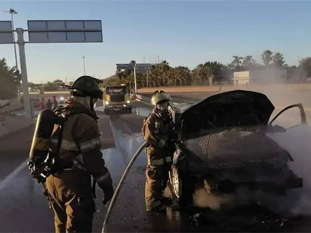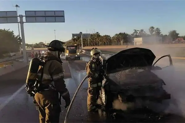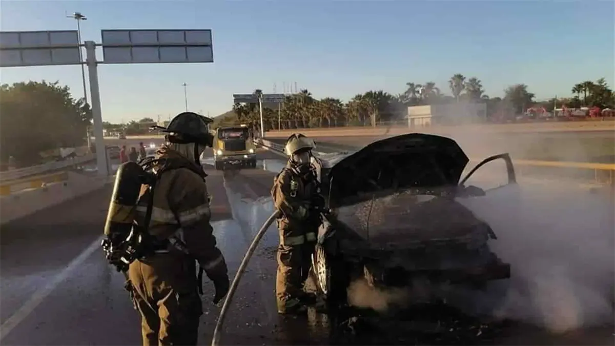 Se incendia un vehículo en el distribuidor vial de Los Mochis