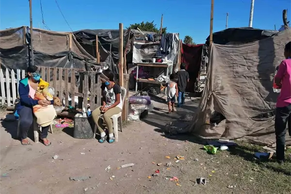 Las personas entre ellas una bebé de un mes y niños de todas las edades viven al día, sin comida y ropa.
