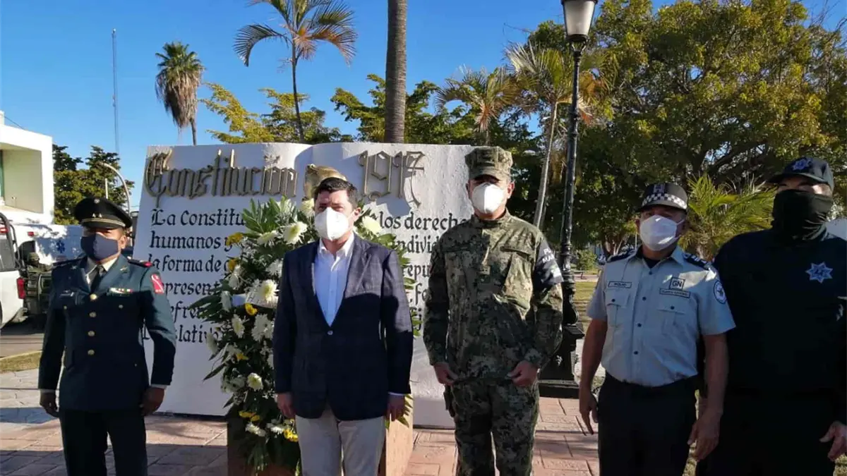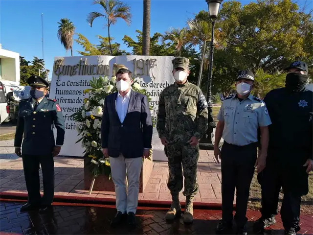 Los Mochis, Sin.– Autoridades civiles y militares de Ahome conmemoraron, la mañana de este viernes, el 104 aniversario de la Promulgación de la Constitución de 1917.
