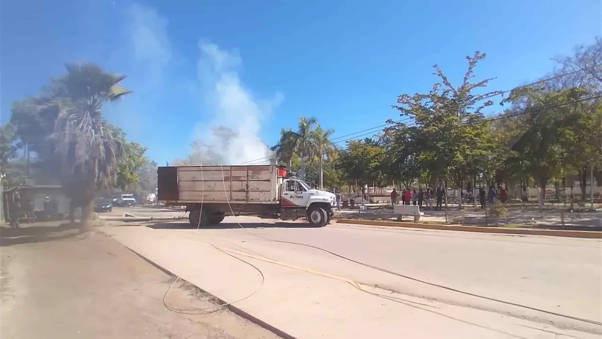 Los Mochis, Sin.- Un accidente en el centro de la sindicatura Central Mochis, dejó importantes daños materiales luego de que un camión recolector de basura derribara un poste de la Comisión Federal de Electricidad (CFE) además provocó la movilización de los cuerpos de auxilio y rescate, ya que se incendió la basura que transportaba; por fortuna no hubo personas lesionadas.
