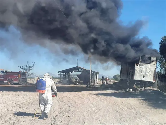 Información recabada indica que unos trabajadores se encontraban en la orilla de una parcela, junto a un dren agrícola, pero se percataron de la presencia de un enjambre en la caja de un tráiler, por lo que decidieron combatirlo con fuego; sin embargo, se les salió de control y se incendió la caja de la unidad de carga.