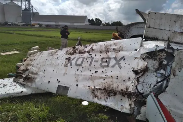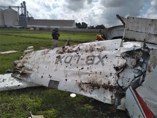 La avioneta tiene matrícula XB-LDX y cayó en unas tierras de cultivo.