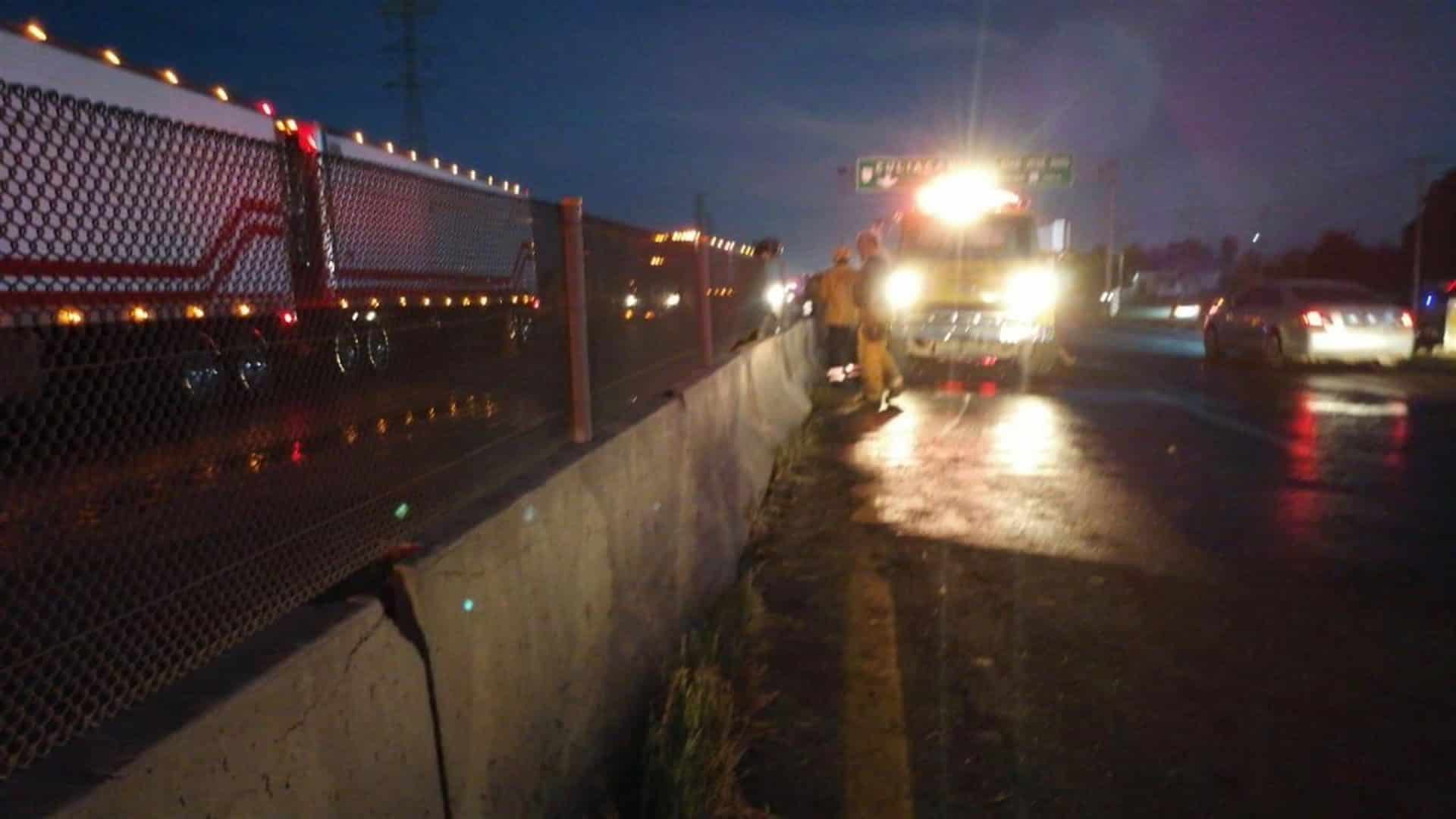 El accidente se registró tras un tractocamión chocó contra el muro de contención a la altura de Juan José Ríos.